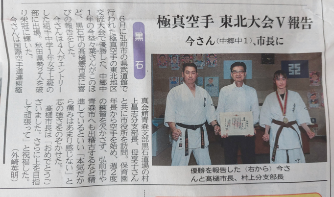 6月の全東北地区交流大会で今埜々葉さんが優勝したことを、高樋憲市長へ報告して来ました。